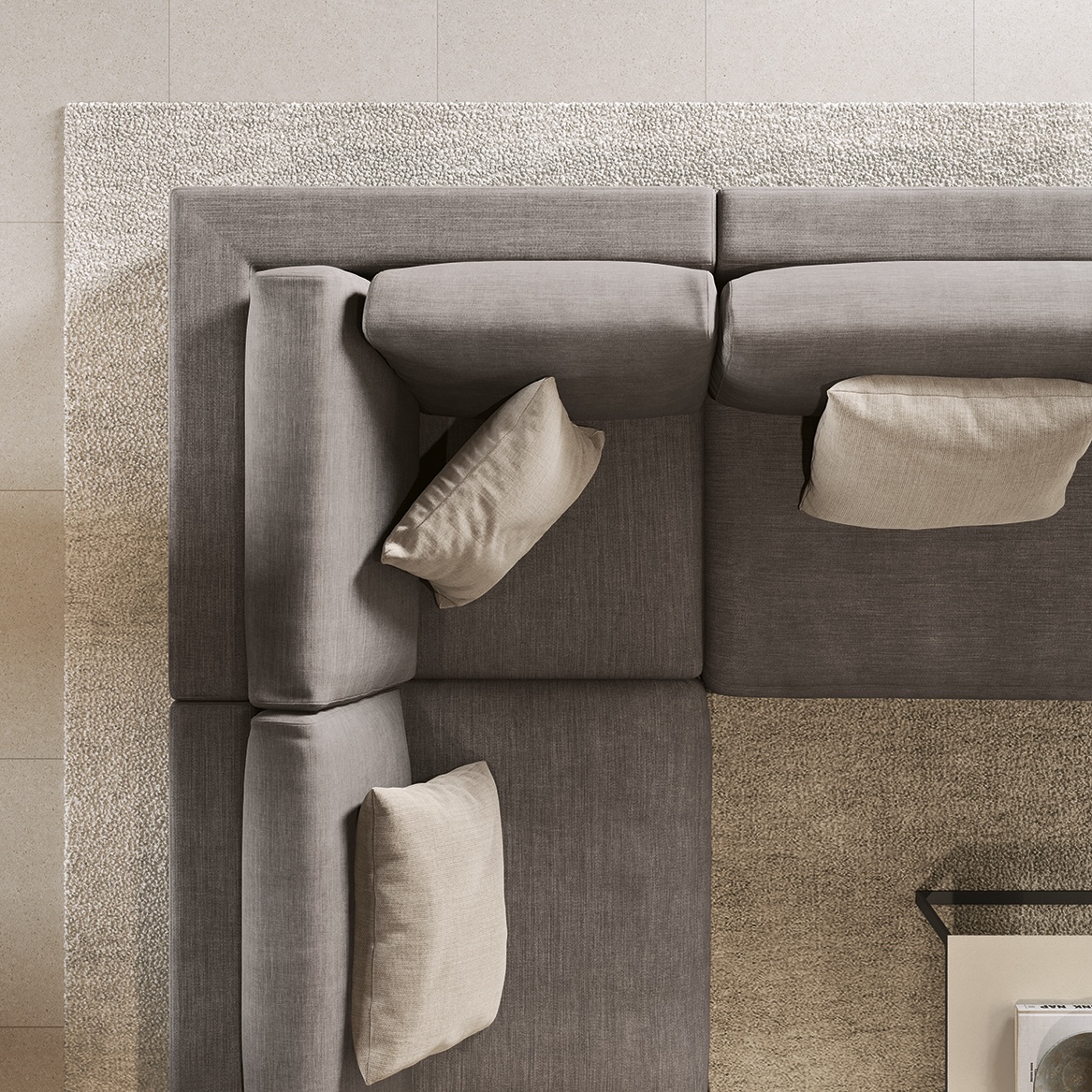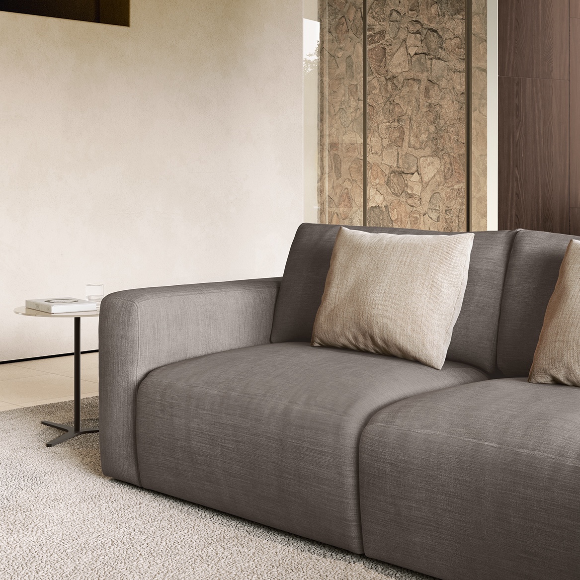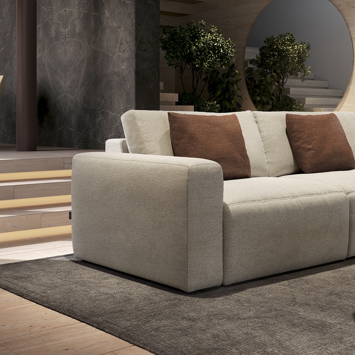 Благодаря симметричной модульности и универсальному шезлонгу, Parioli легко адаптируется к любому помещению. Он одинаково хорошо смотрится у стены и в центре комнаты, сохраняя ощущение простора и свободы.