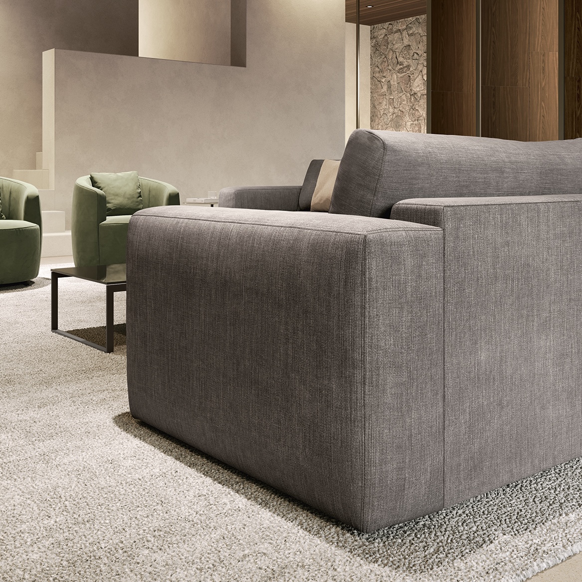 Parioli — это воплощение утончённого комфорта. Чёткие квадратные линии, сбалансированные пропорции и мягкая объёмность создают эстетичный акцент в любой комнате. Этот диван словно безмолвный герой интерьера: сдержанный, но заметный.