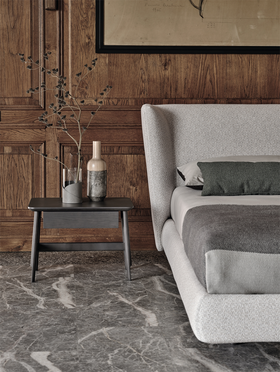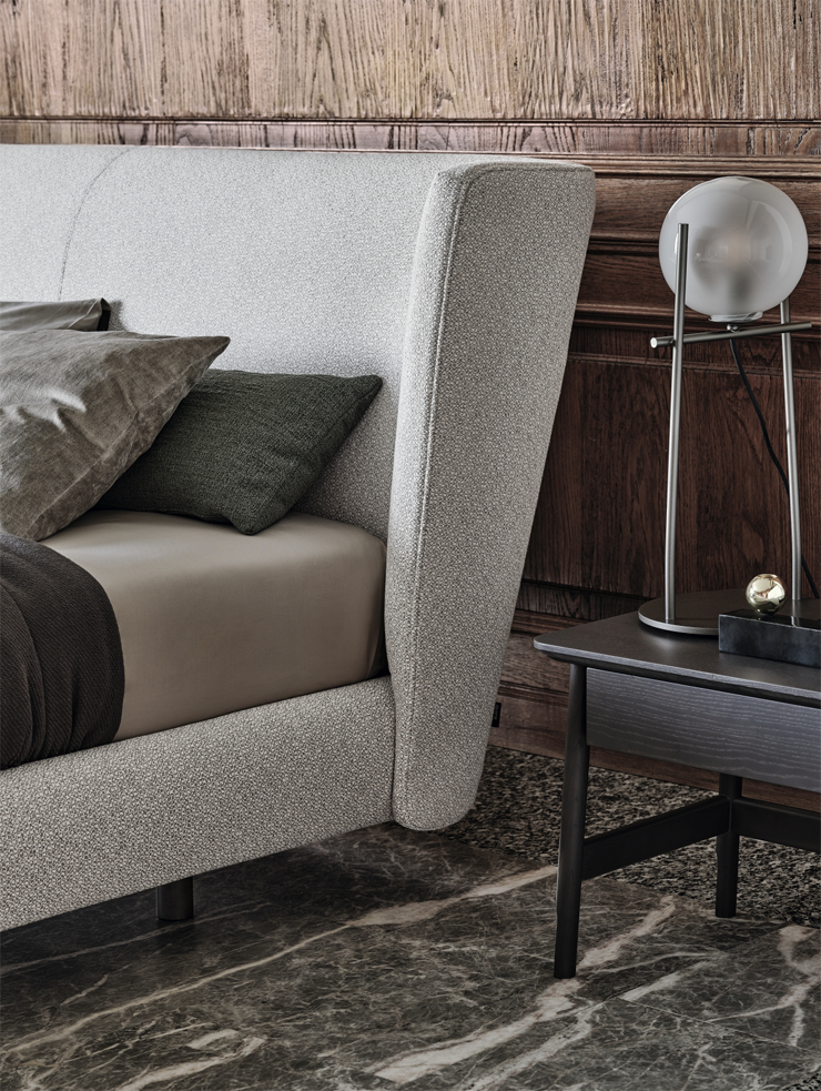 Высокое изголовье и утончённый силуэт создают образ кровати, которая становится центральным элементом спальни. Royal сочетает в себе эстетику и функциональность, подчеркивая индивидуальность интерьера.