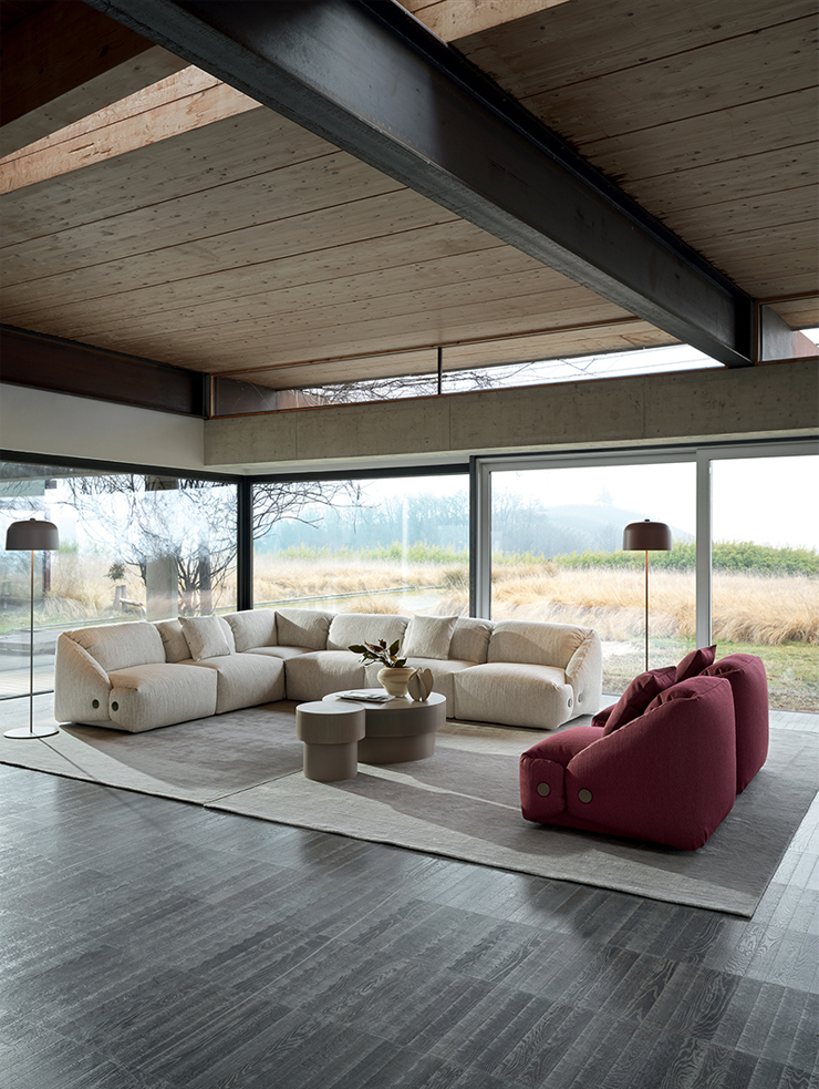 Patrick Norguet создал Melville, вдохновленный искусством складывания и швейной классикой: крупные формы драпированы складками, как у воротника, сохраняя объем и мягкость. Модель выражает дизайнерский комфорт, превращая диван в выразительный элемент, который прославляет баланс формы и духа.