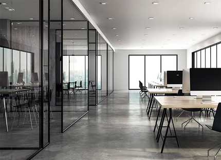 Система Grafia позволяет реализовать конструкции высотой до потолка — до 5 метров — что создаёт визуально чистое, просторное пространство. Возможность скрытого или открытого рельса усиливает ощущение лёгкости и утончённости интерьера.