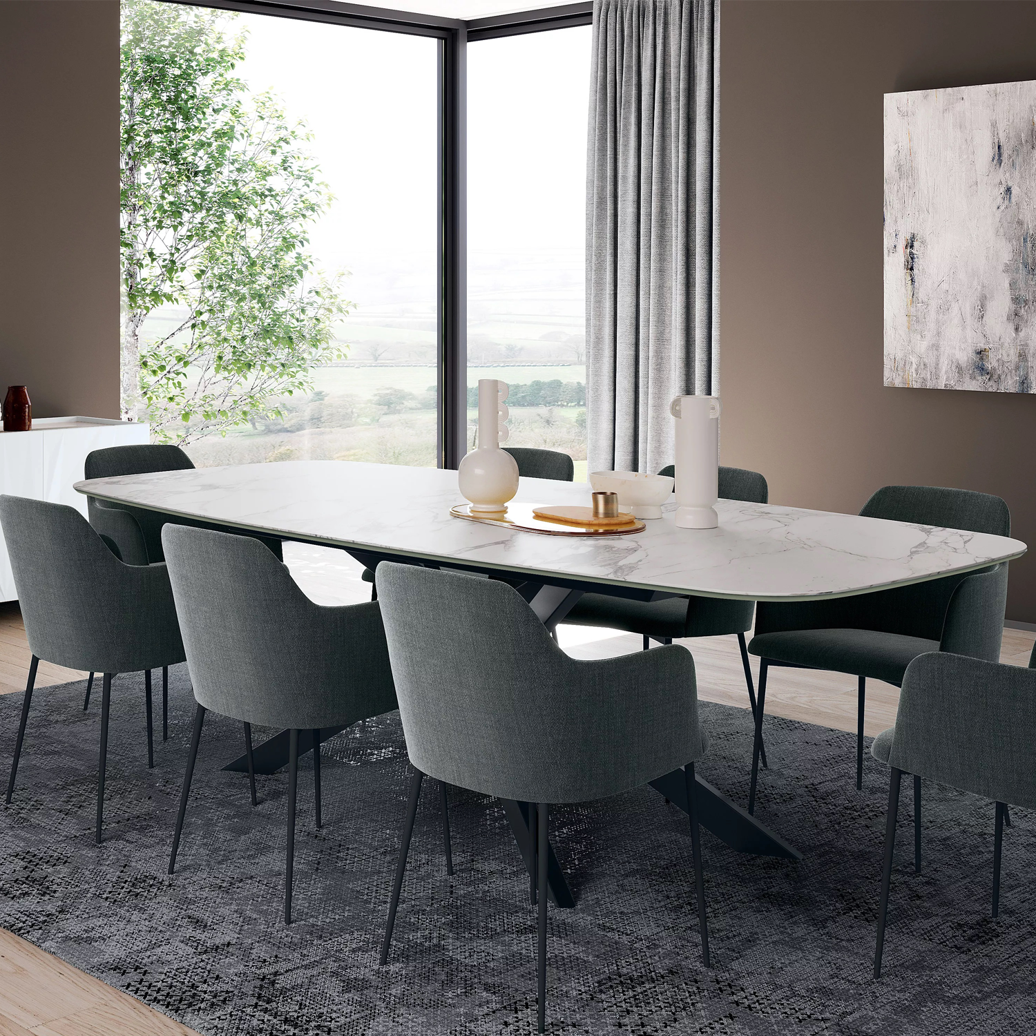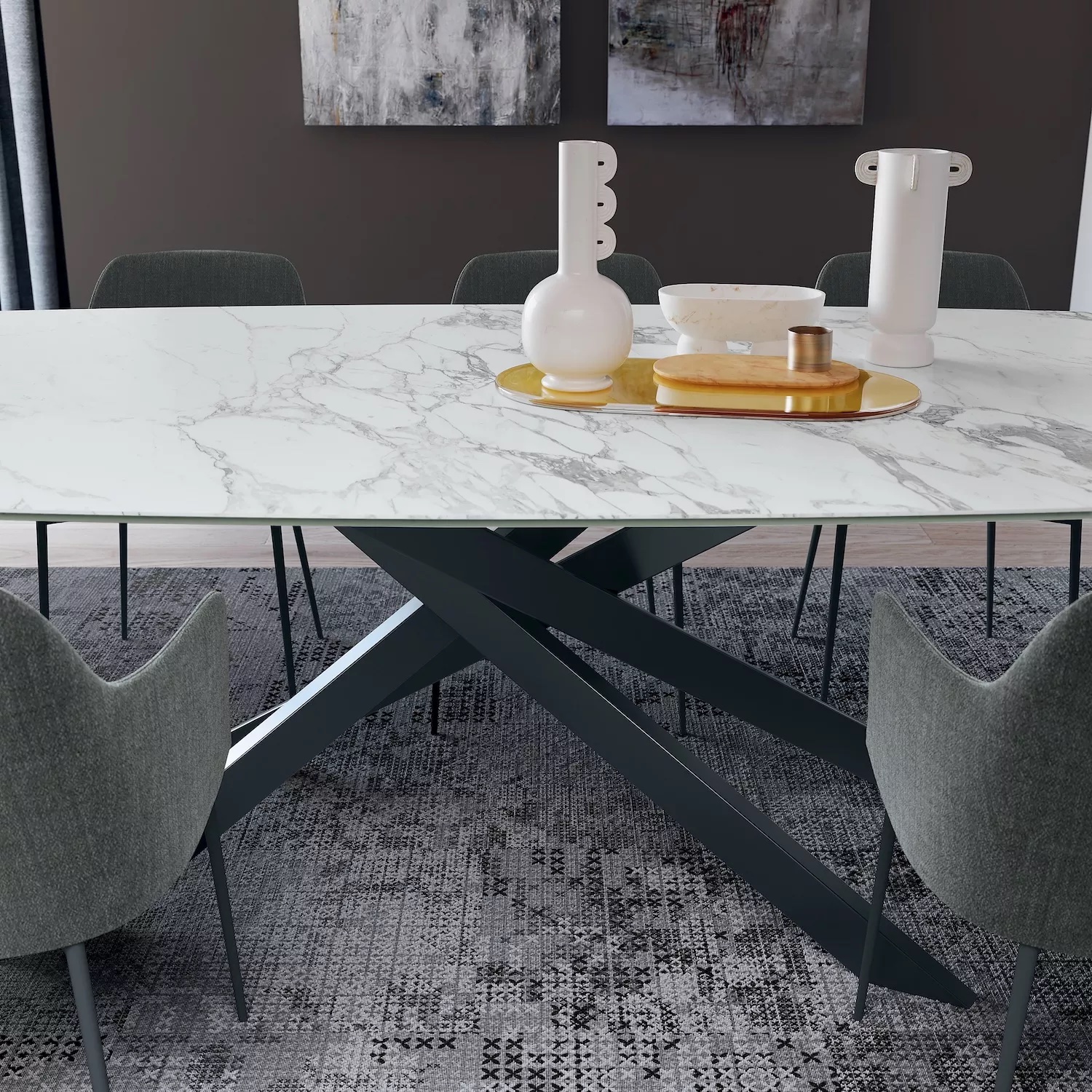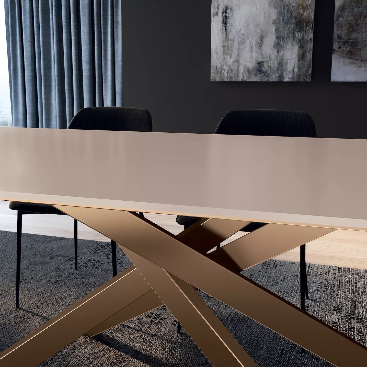 Bliss создан для тех, кто ценит свободу выбора и стиль в каждой детали. Его тонкая металлическая основа в оттенках антрацит, чёрный, тёмная латунь или песочный сочетается с множеством вариантов столешниц: от натуральной текстуры дерева до глянца стекла или изысканности Supermarmo. Прямоугольный или овальный, фиксированный или раздвижной — Bliss легко впишется в любую обеденную зону, делая каждый приём пищи особенным.