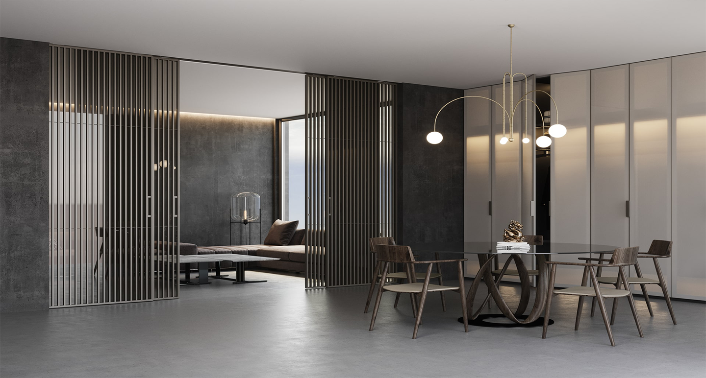 Раздвижные конструкции System оснащены доводчиками и инструменты европейского качества, обеспечивая мягкое и почти бесшумное открывание. Это позволяет использовать систему не только как перегородку, но и как стильный элемент декора.