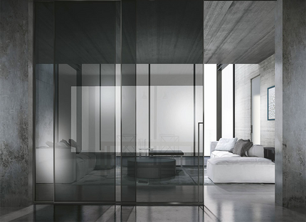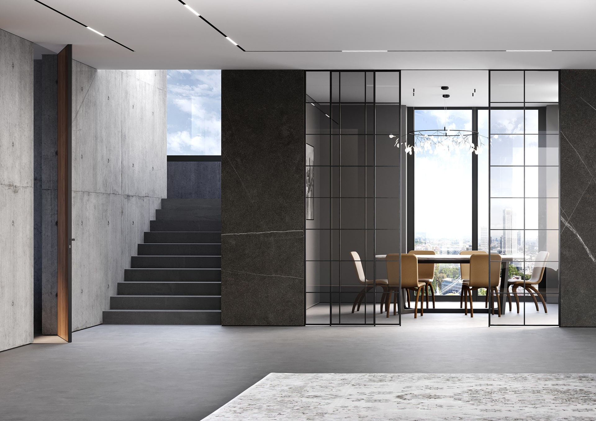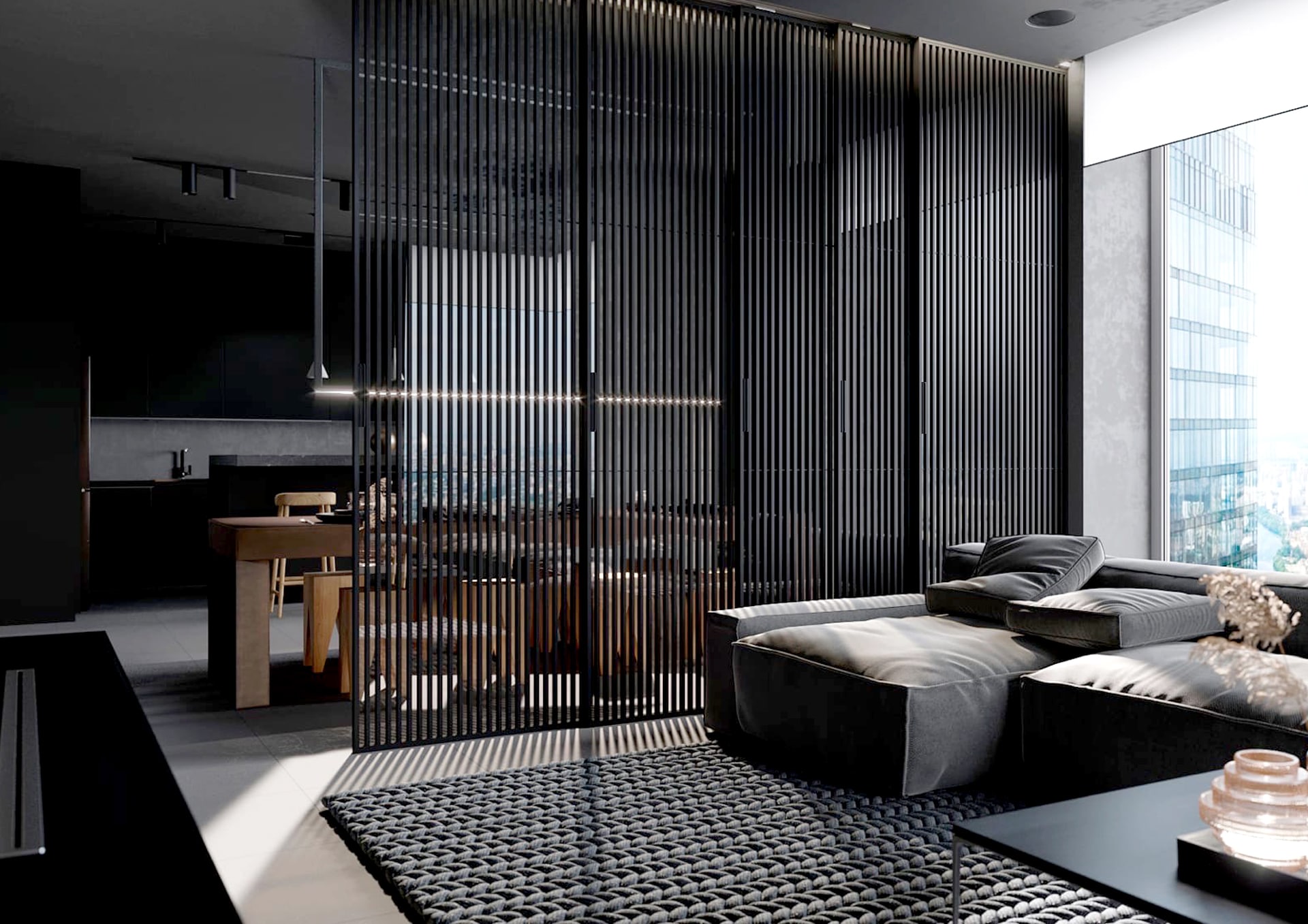 Панели System достигают высоты до 5 метров, создавая эффект простора и визуального порядка. Универсальный дизайн и строгие линии делают её идеальным решением для современных интерьеров и зонирования комнат.