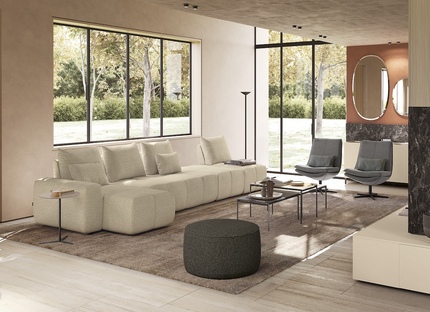 Модули Holland легко перестраиваются в зависимости от планировки и стиля комнаты. Незаметные механизмы и сдержанный дизайн позволяют создать композиции — от уютных уголков до роскошных центральных зон отдыха.