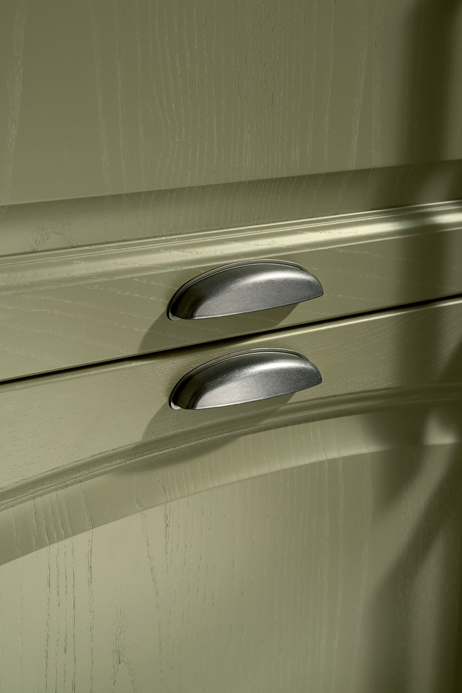Комбинация оттенков Verde Naturale и Verde Dorian — это диалог между теплом природных тонов и глубиной утончённого зелёного. Такой ансамбль создаёт атмосферу спокойствия, баланса и свежести. Лаконичные фасады, продуманная эргономика и вариативность модулей делают эту кухню функциональной и эстетически безупречной.