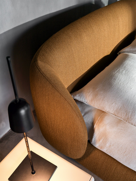 Органичные линии и плавные изгибы превращают кровать в центр внимания интерьера. Она продолжает эстетику одноимённой коллекции, объединяя в себе изысканный дизайн и атмосферу интимности.